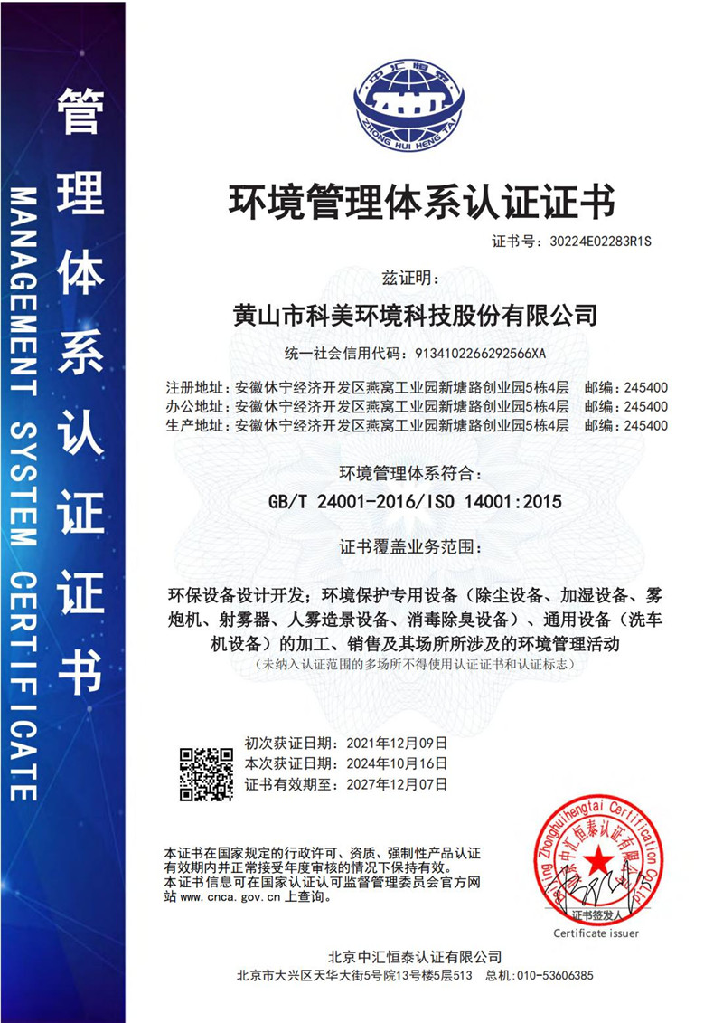 • 環境管理體系認證證書